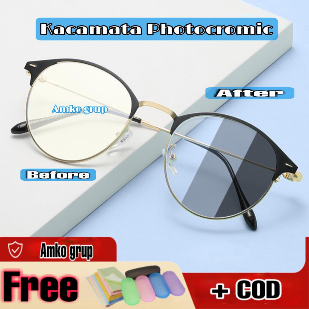KACAMATA PHOTOCROMIC 1920 RETRO BERUBAH WARNA TERBARU WANITA PRIA FASHION UNISEX VINTAGE FREE BOX DAN LAP