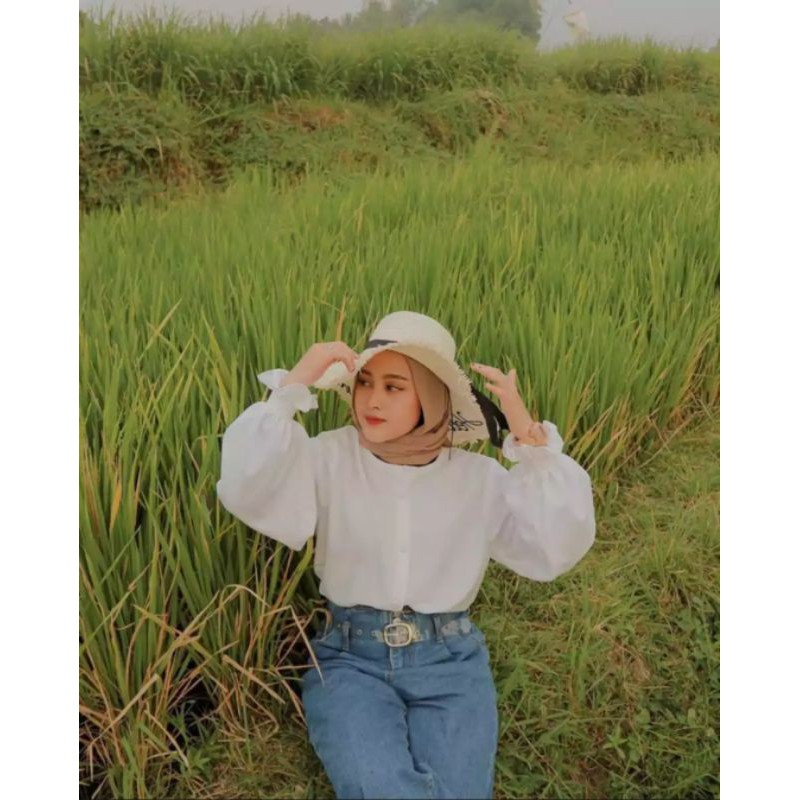 Baju Atasan Kemeja Wanita Basic Polos Lengan Pendek Casual Fashion untuk Kuliah Dan Santai