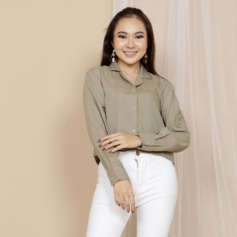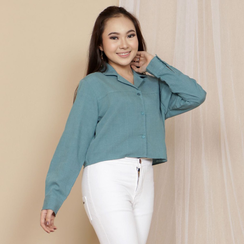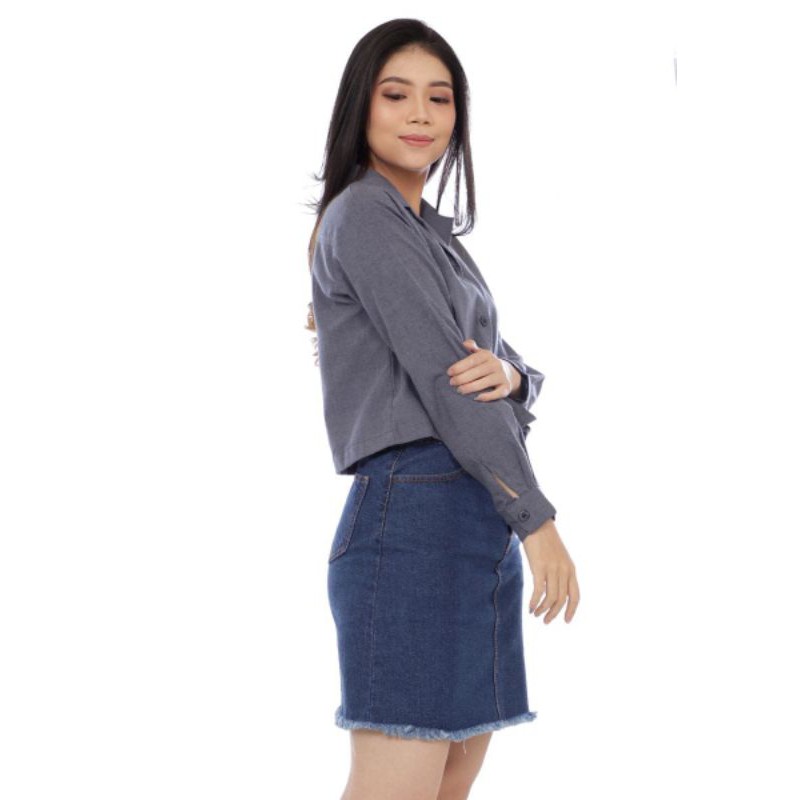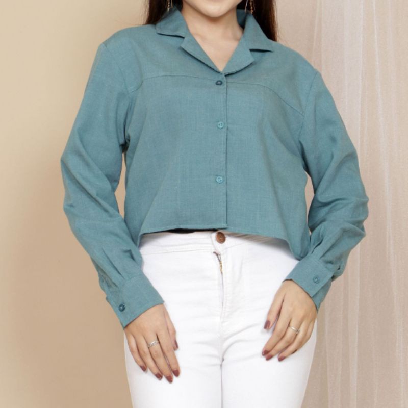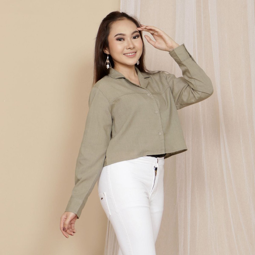 Alasan kenapa harus beli Atasan Blouse Kemeja Lengan Panjang Angie Crop Top Baju Kerja Kuliah Prmeium Termurah AFS98 - By amarylis_fashion sekarang