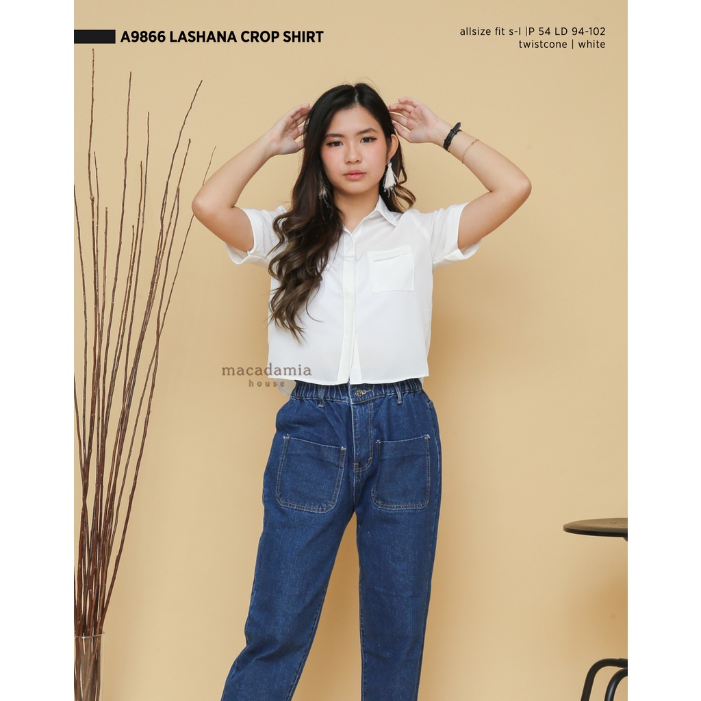 A9866 LASHANA CROP SHIRT - MACADAMIA HOUSE FASHION WANITA - TOP BLOUSE - CASUAL SANTAI