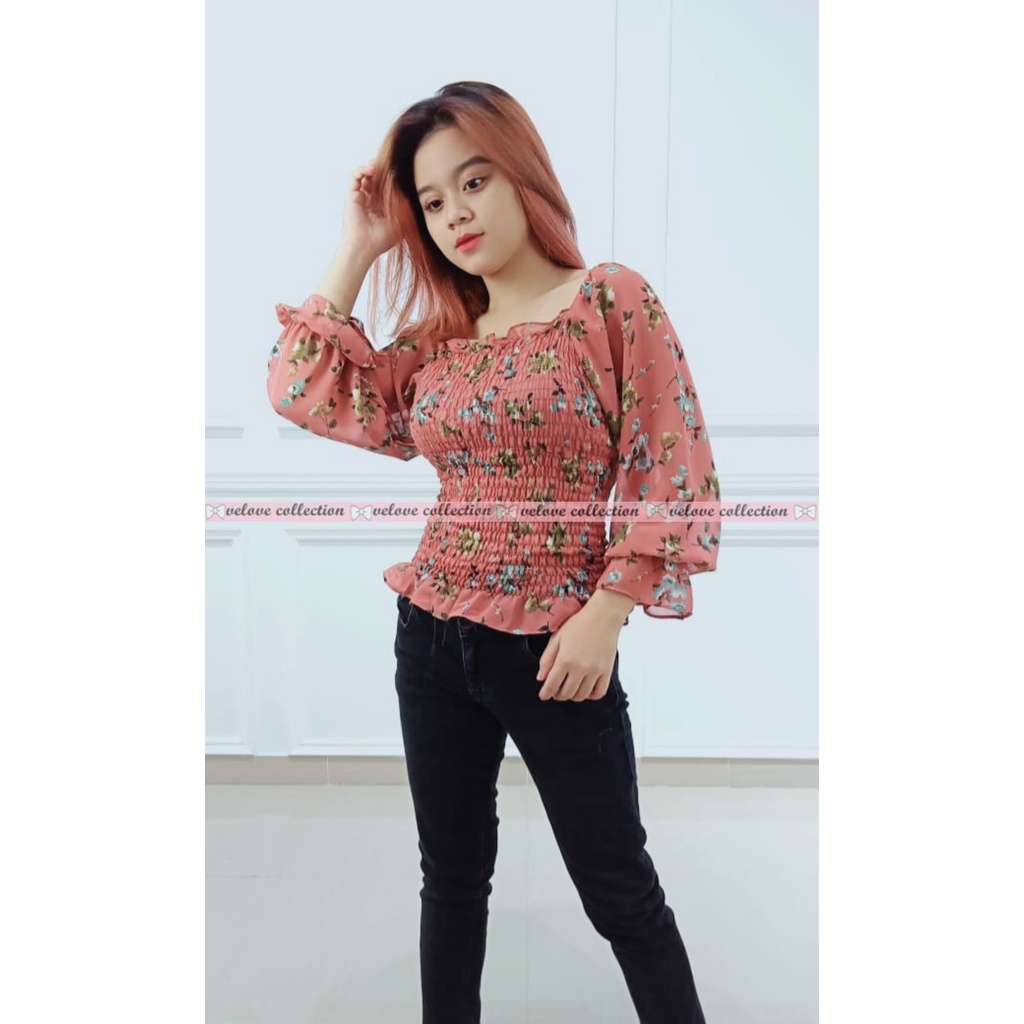Alasan kenapa harus beli MIA STORY FASHION Blouse Cecilia Blus Wanita Motif Bunga Top Korean Model Vintage Ukuran All Size sekarang
