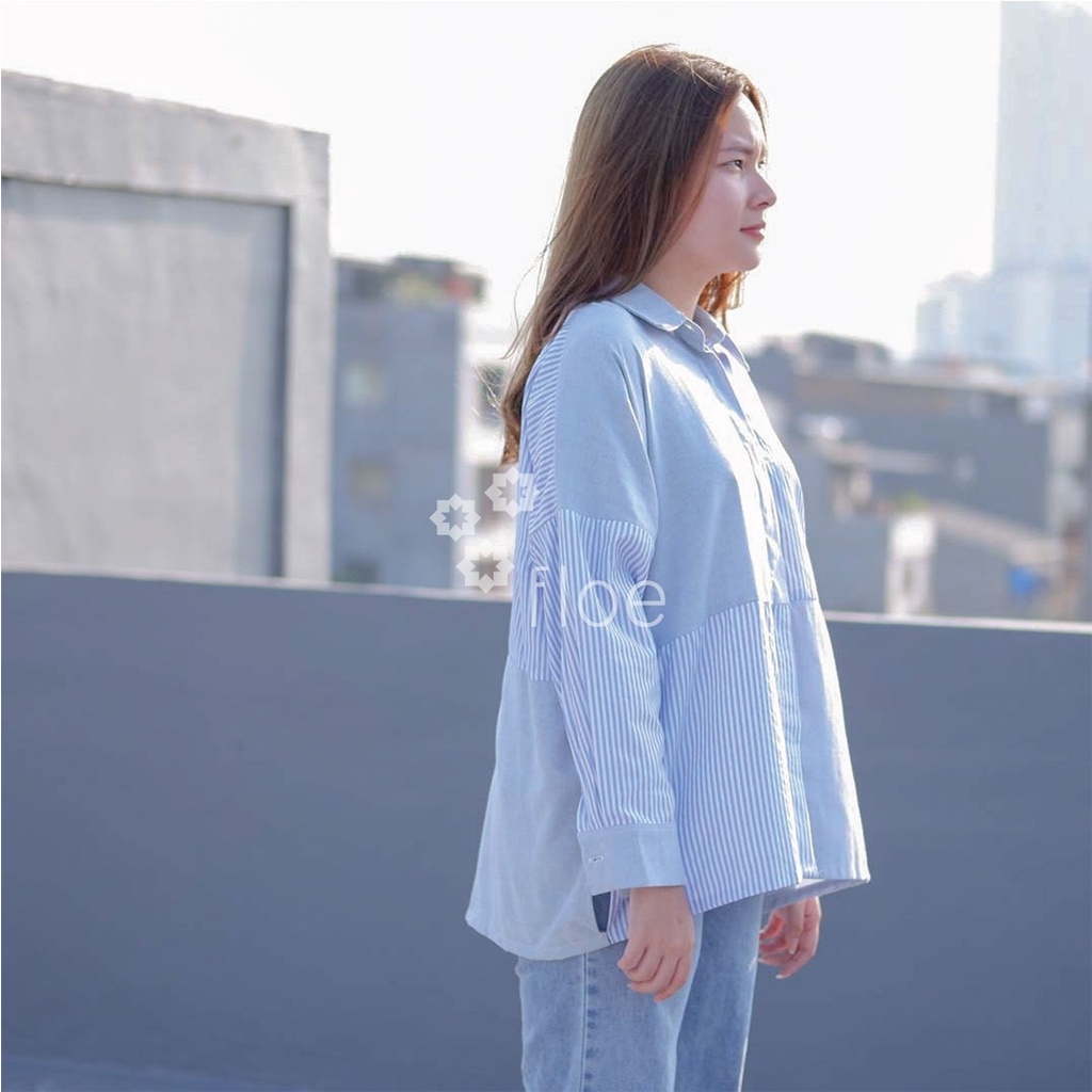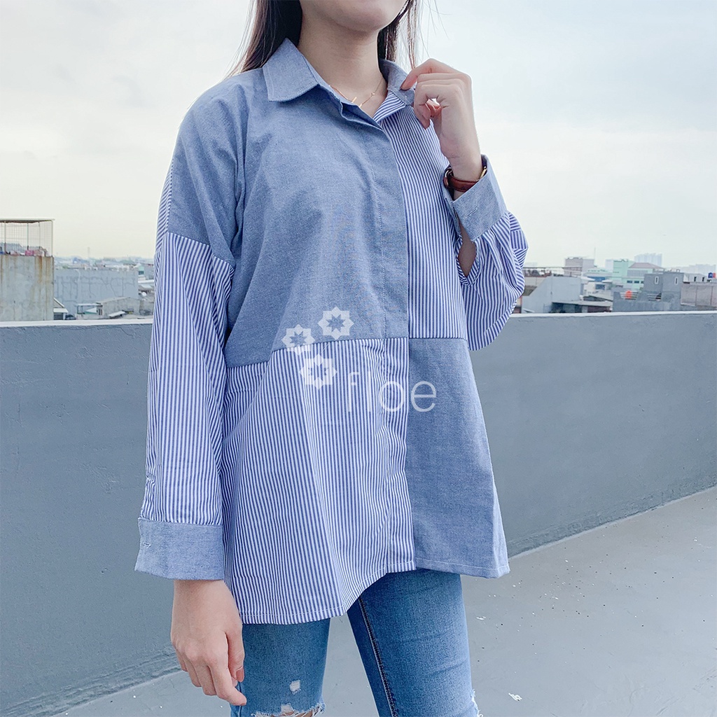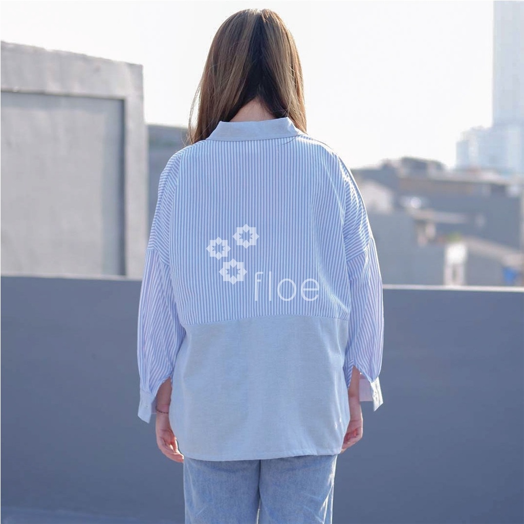 FASHION.ID90 KEMEJA CASUAL WANITA KOMBINASI SALUR BIGSIZE BEST SELLER (043)