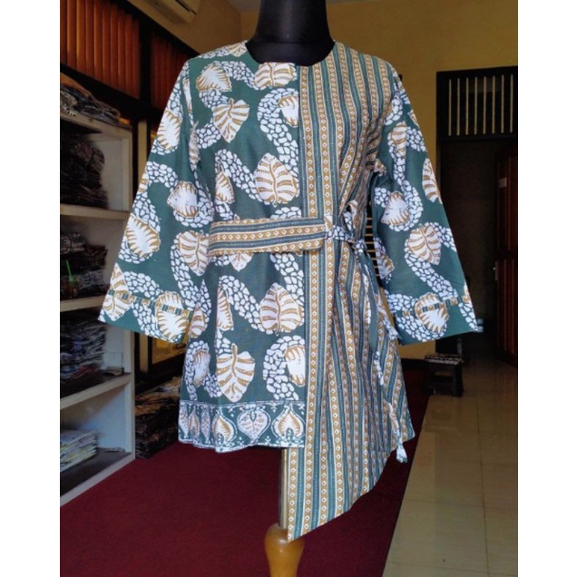 Kelebihan - Kelebihan membeli Batik wanita ASJ SA HRB026 Kenongo Kemeja Tosca Pendek Batik Fashion Baju Wanita di Toko ini